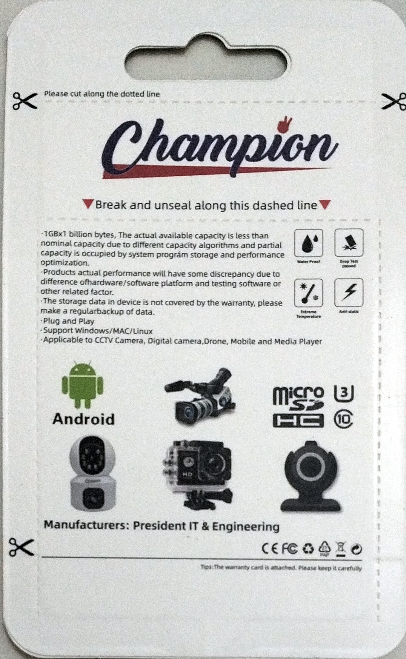 চ্যাম্পিয়ন 64GB MicroSD মেমরী কার্ড
